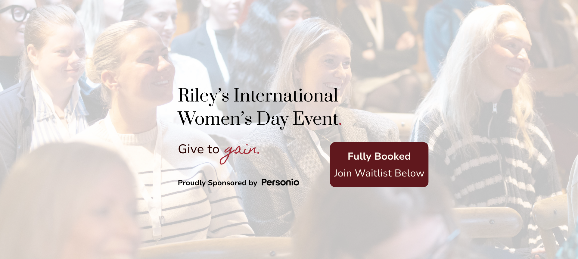 The response to Riley’s International Women’s Day event has been incredible and all spaces are now filled. If you’d like to attend, join the waitlist below. We’ll be in touch if a space becomes available.